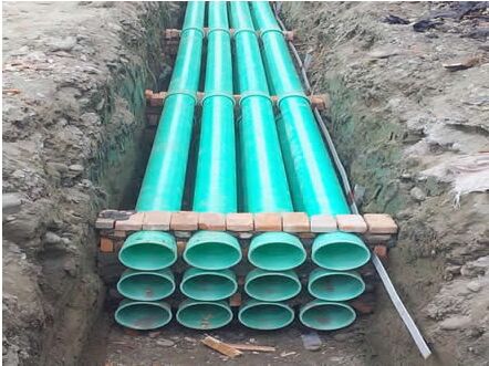 油田玻璃鋼管溝底部不平整,有硬土塊、石塊等尖銳硬物堵塞管道。一般來說,低洼地區(qū)的壕溝是機械挖掘的。由于地勢較低,溝底潮濕或充滿水,很有可能出現(xiàn)硬物,主要是礫石、磚塊和障礙管道,特別是當溝上有大量水時,當它們存在于水面以下時不容易被發(fā)現(xiàn)。